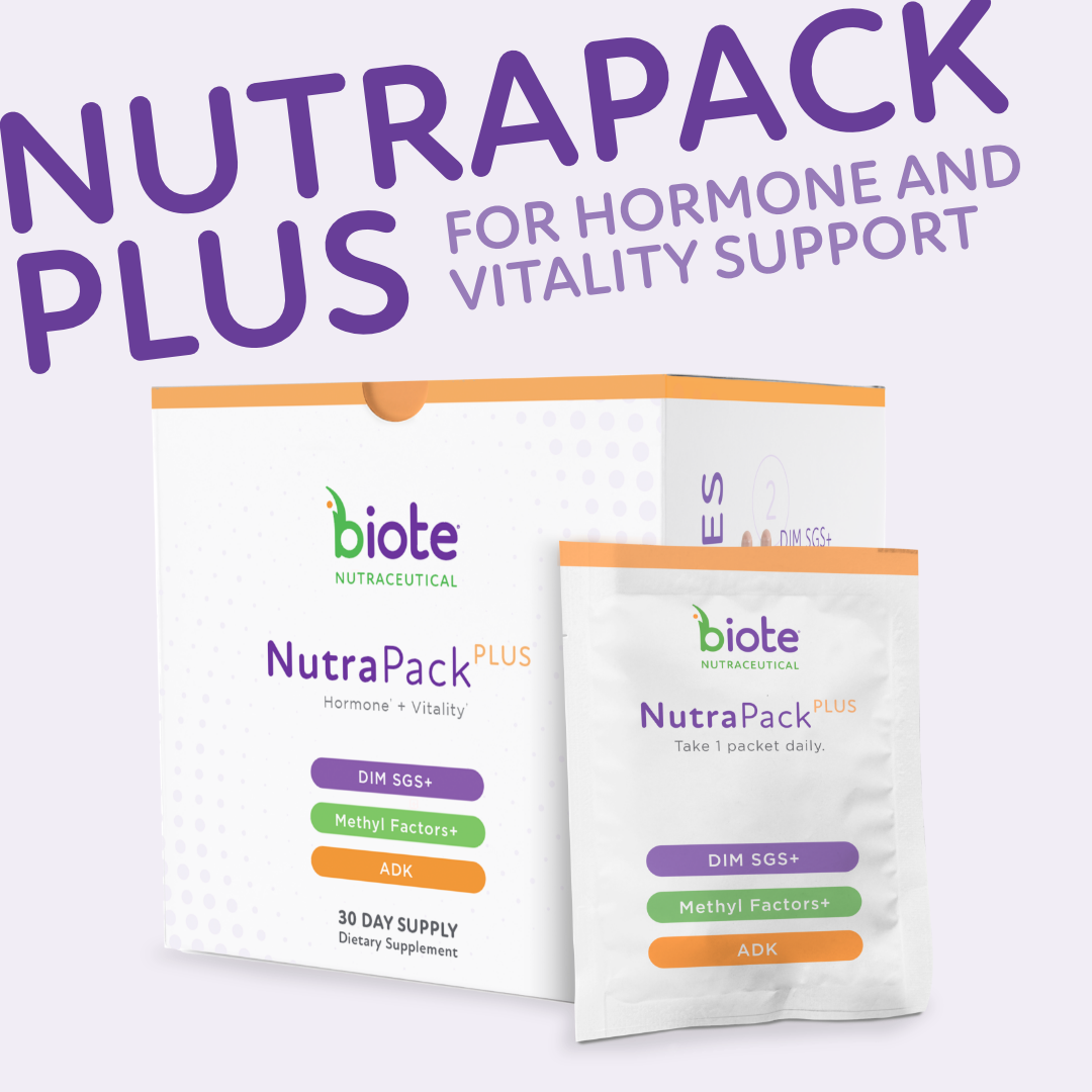NutraPackPlus contains three nutraceuticals vital for healthy hormone balance and vitality – DIM SGS+, ADK, and Methyl Factors+ – pre-packaged in an easy-to-take, convenient daily packet. NutraPackPlus contains one extra DIM SGS+ for those who need extra support.